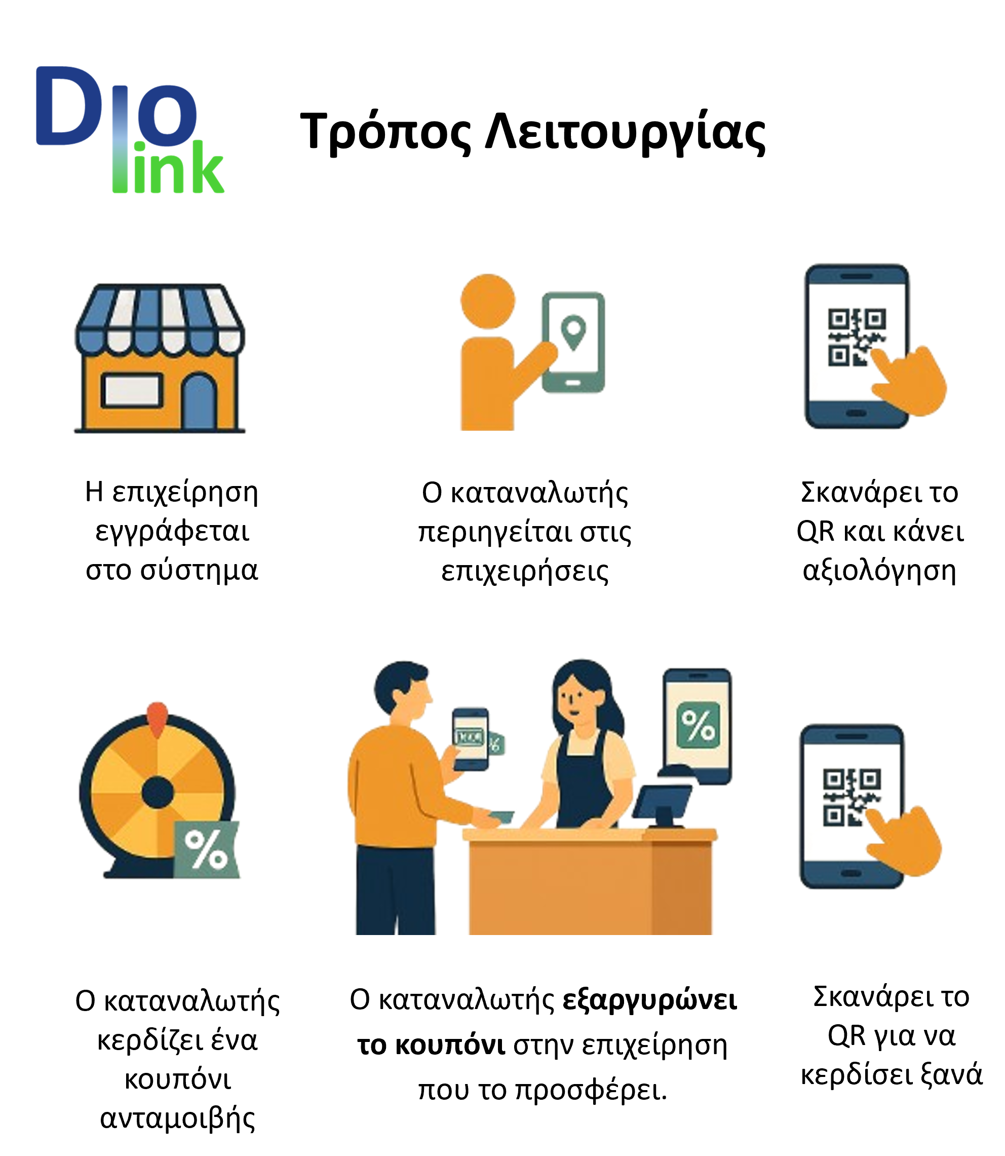 Το DIOLINK είναι η έξυπνη ψηφιακή πλατφόρμα που συνδέει τους καταναλωτές με τις τοπικές επιχειρήσεις του Δήμου Διονύσου, δημιουργώντας έναν κύκλο επιβράβευσης που ωφελεί όλους.